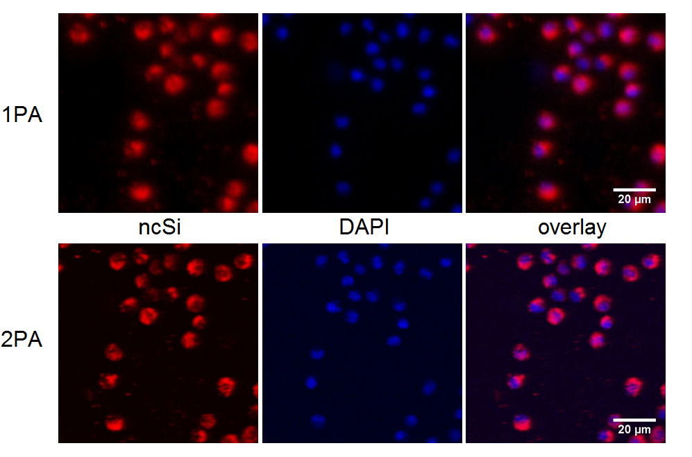 PL and absorbance spectra of ncSi1PA and 2PA excited PL of ncSiConfocal microscopy imaging of mouse cells with ncSiTEM images of ncSi