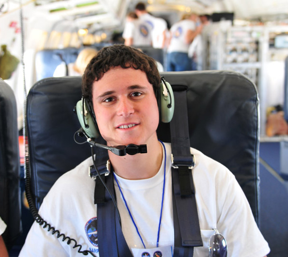 Brandon Furey with the linear quadrupole ion trap in Prof. Jessie Petricka’s AMO Lab